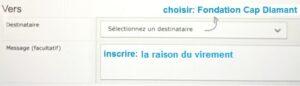 2) Si ce n’est pas déjà fait, ajoutez la Fondation Cap Diamant comme DESTINATAIRE et inscrivez comme courriel de la Fondation: interac@fondationcapdiamant.com